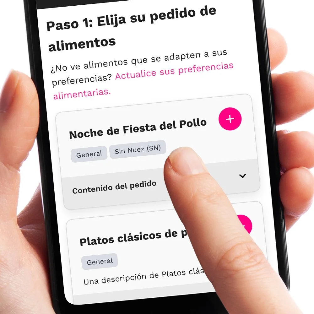 Nuestros dietistas registrados han creado pedidos de alimentos adaptados a tus necesidades nutricionales, dietéticas y situacionales.