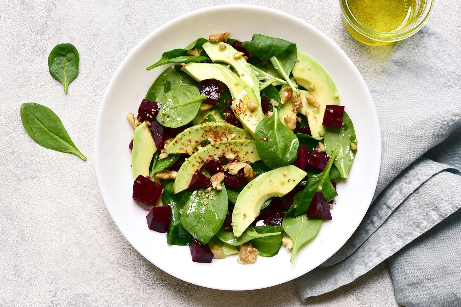 Ensalada Crujiente de Espinaca con Betabel y Aguacate